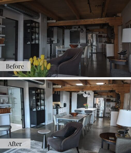 “I had this beautiful remodeled and open space, but you couldn’t see half of it because of how dark it was. When I woke up in the morning, I wanted to be greeted by this flood of natural light in every part of the loft, and that just wasn’t the case,” added Nelson.