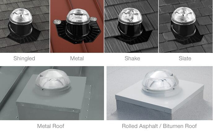 The Brighten Up Series has leak-proof options to mount its domes on any roof type, from curb caps to flashings for both pitched and non-pitched roofs.
