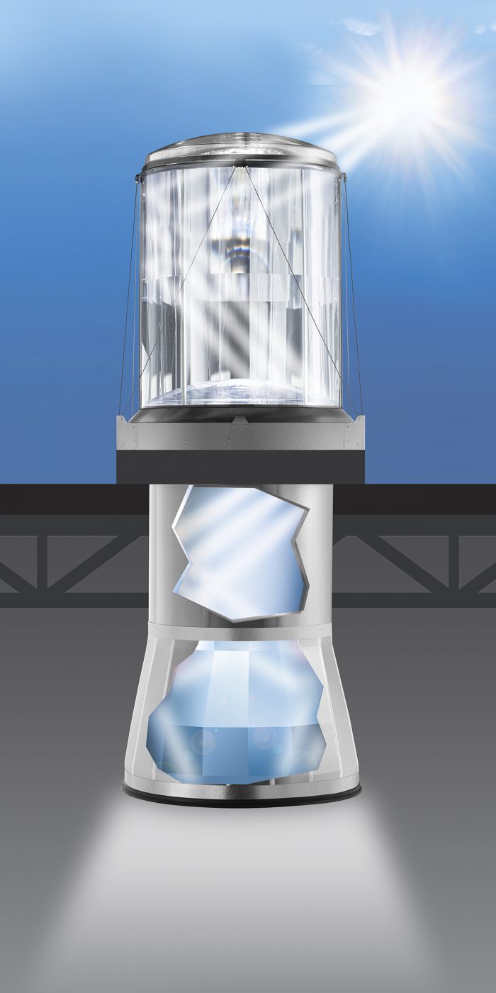 - Maximizes daylight delivery by capturing and redirecting low-angle light downward into the system