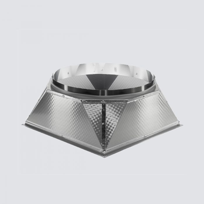 The SolaMaster® Series features a patented transition box that seamlessly converts the round tubing to a square diffuser. The transition box easily fits into standard commercial ceiling grids. Available in metal or polymeric material.