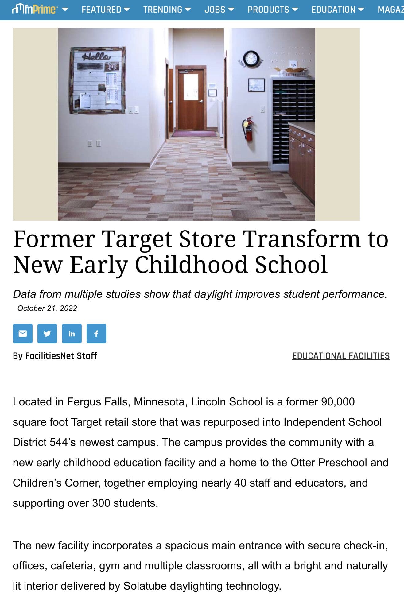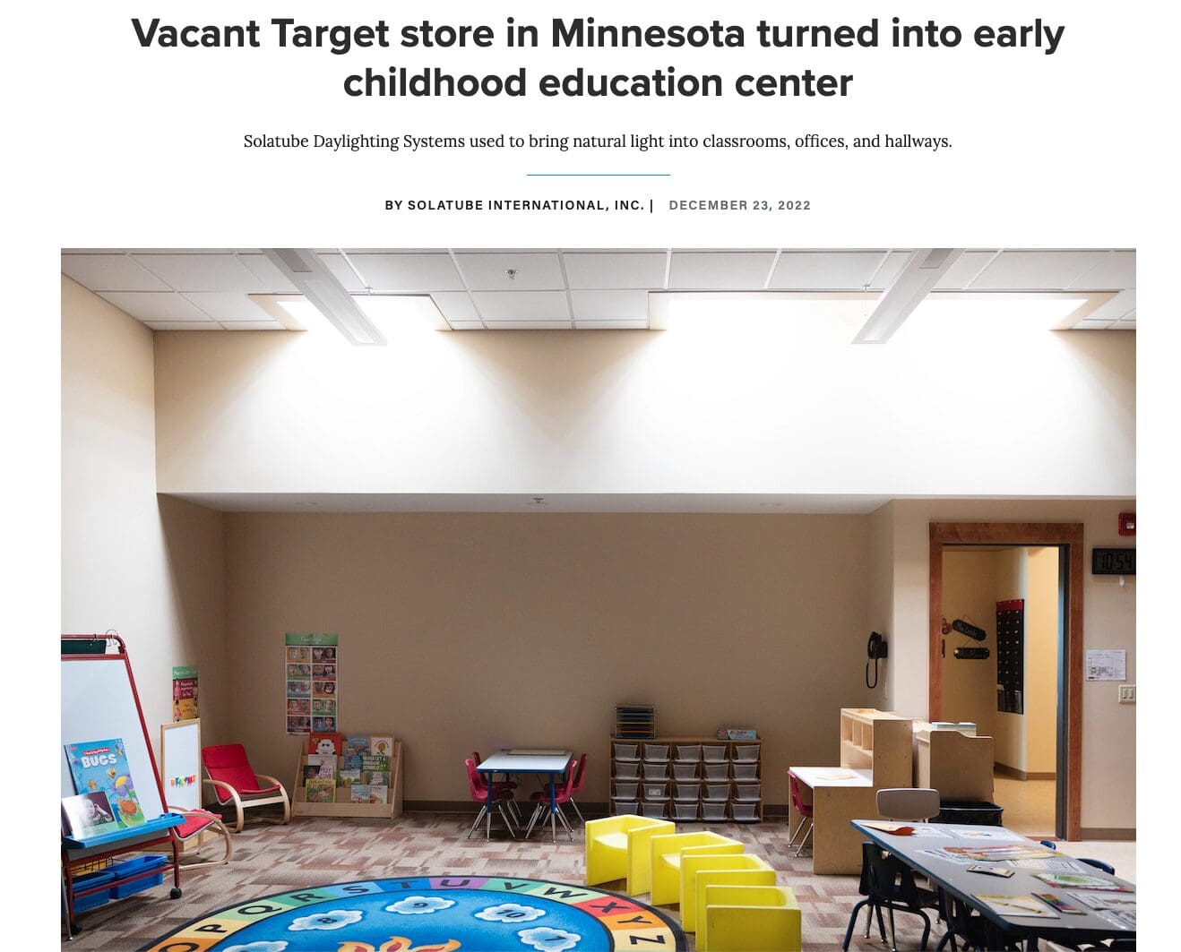 Target retail store that was repurposed into Independent School and naturally lit by Solatube daylighting technology.