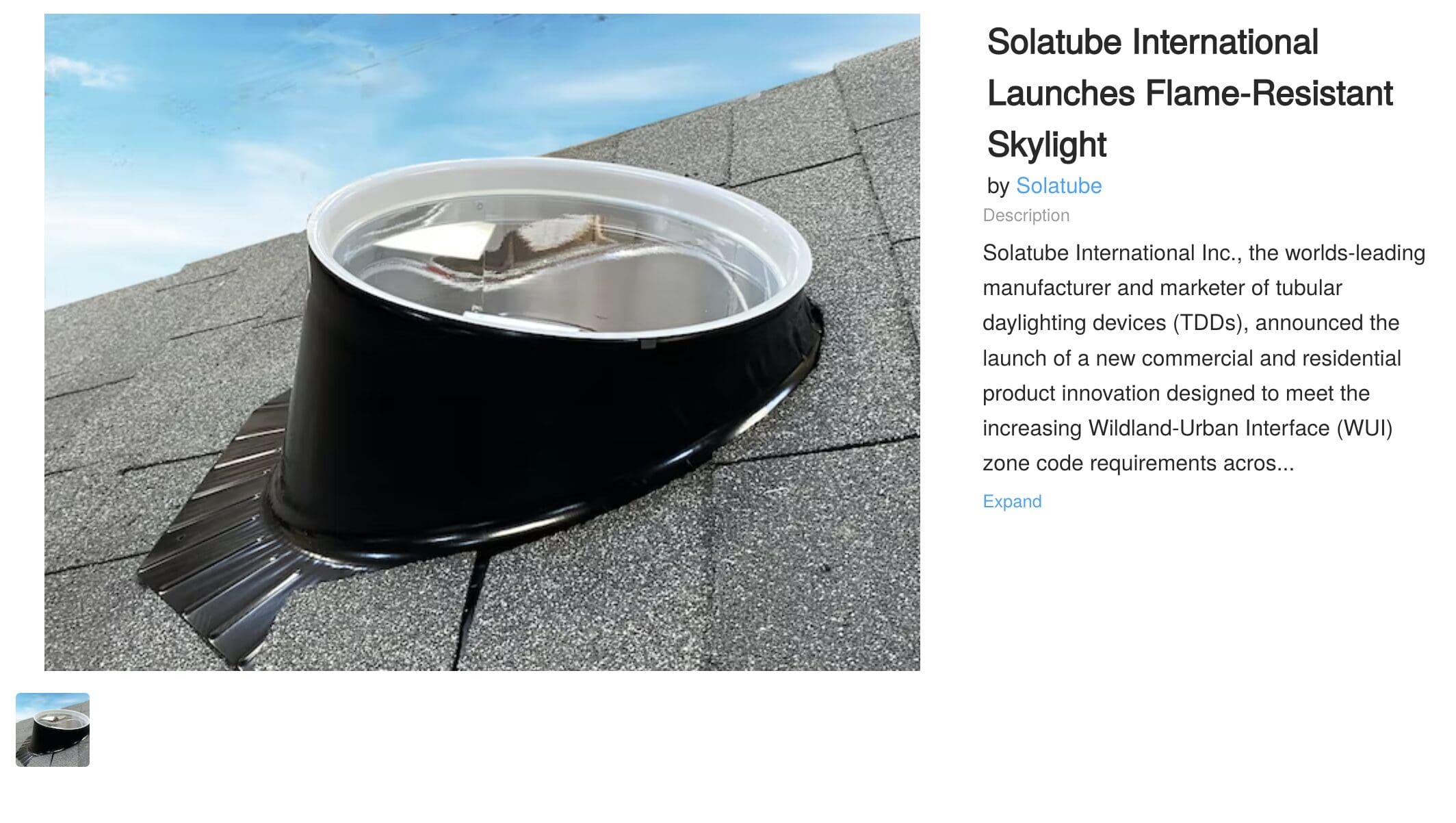Solatube International Launches Flame-Resistant Skylight