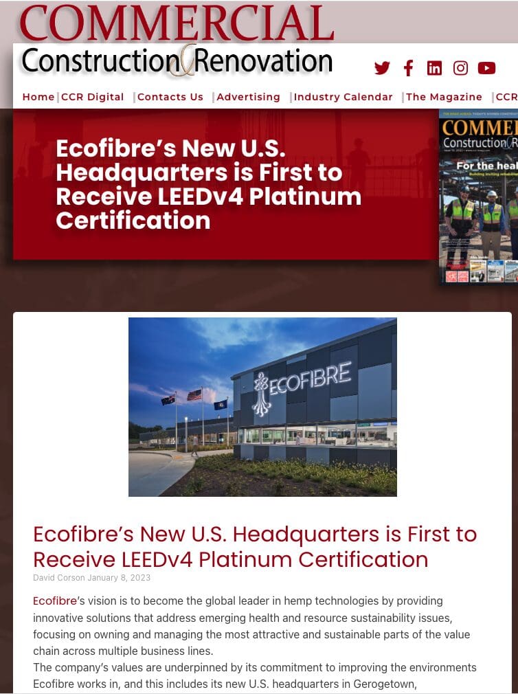 Ecofibre’s New U.S. Headquarters is First to Receive LEEDv4 Platinum Certification