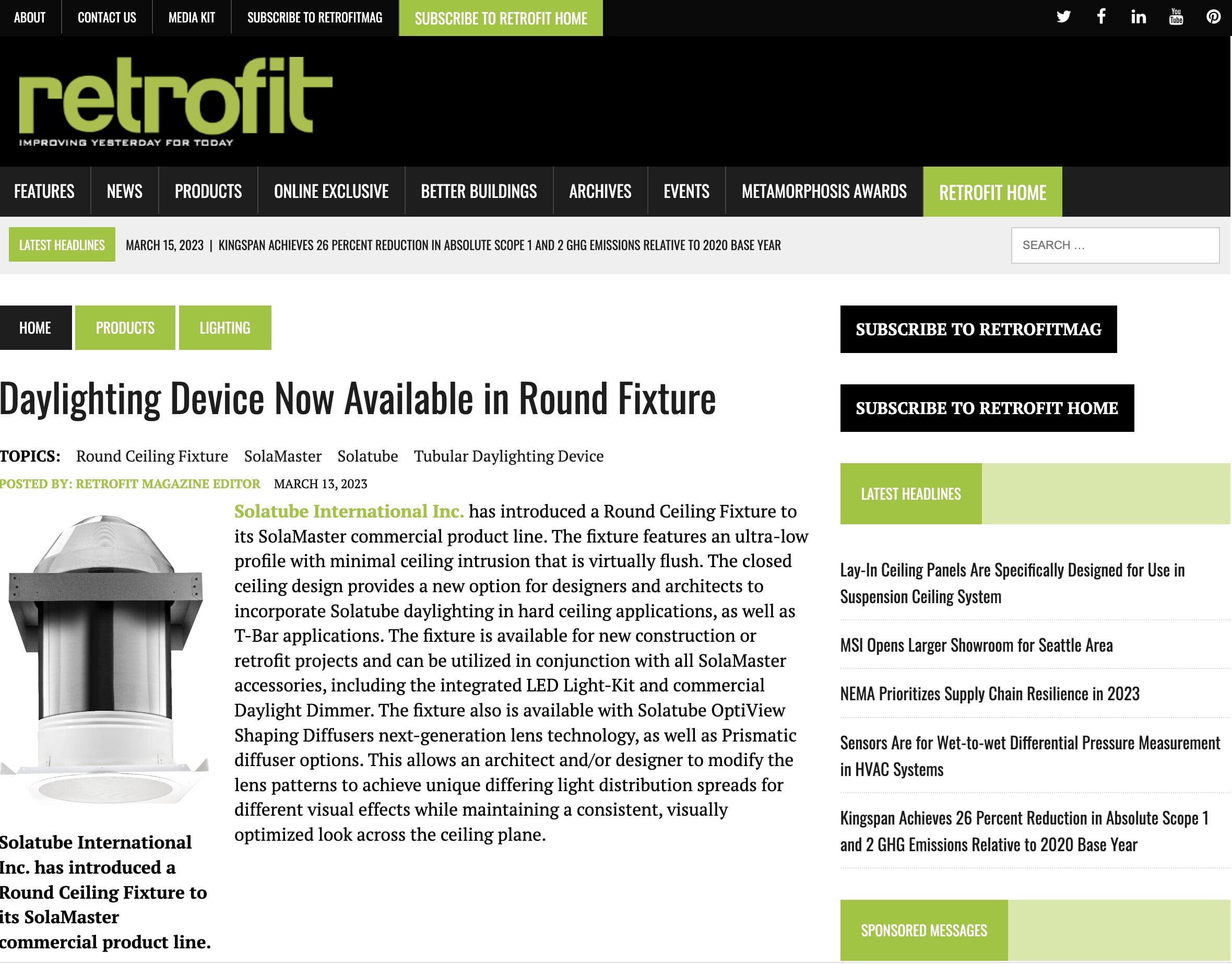 Solatube Makes it on the Best Lighting Products of 2022 List