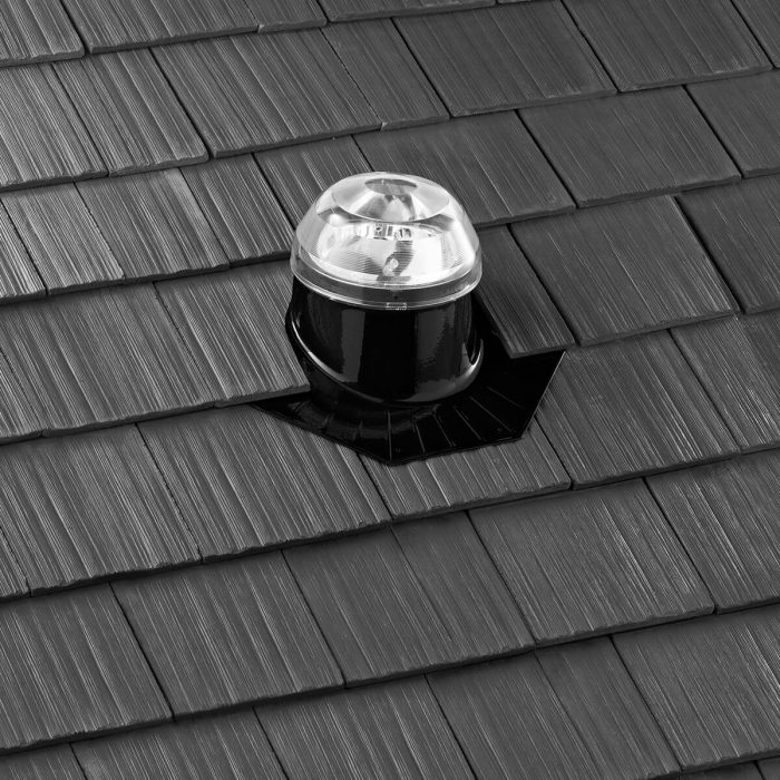 Provides a horizontal opening on a sloped roof. Shingle, metal, shake, slate roof types.