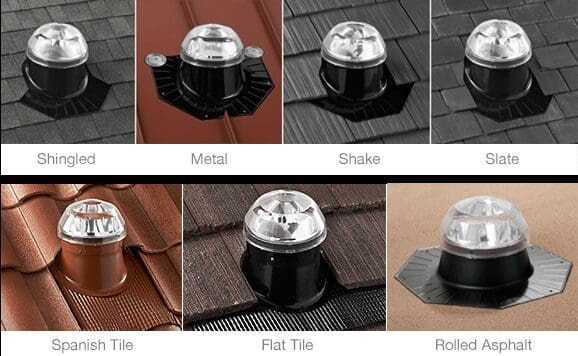 Solatube has leak-proof flashing options to mount its sunlight collectors (standard and low-profile) on any roof type, from shingle to tile, and everything in between.